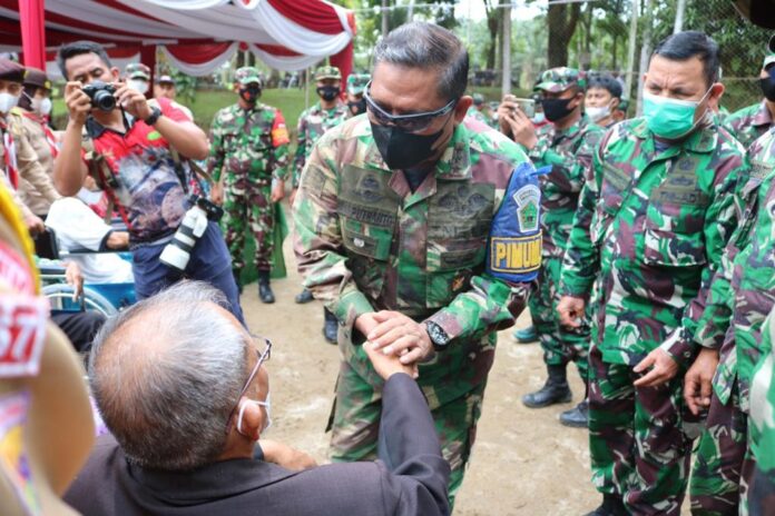 Global Cyber News.Com| Simalungun – Komandan Kodiklat TNI AD, Letjen TNI AM Putranto, SSos, secara simbolis menyerahkan paket bantuan sosial Batalyon Tim Pertempuran (YTP) R-100 Kodam I/BB kepada warga masyarakat di Marihat, Kecamatan Siantar, Kabupaten Simalungun, Sumatera Utara, Minggu (24/10/2021).
