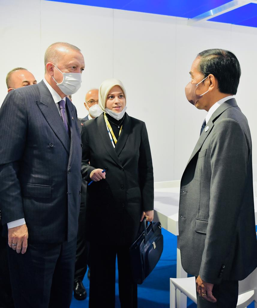 Global Cyber News.Com| Di sela-sela rangkaian acara KTT G20 yang digelar di La Nuvola, Roma, Italia, pada Sabtu, 30 Oktober 2021, Presiden Joko Widodo menggelar pertemuan bilateral dengan Presiden Turki Recep Tayyip Erdogan. Kedua Presiden membahas sejumlah hal, antara lain rencana kunjungan Presiden Erdogan ke Indonesia.