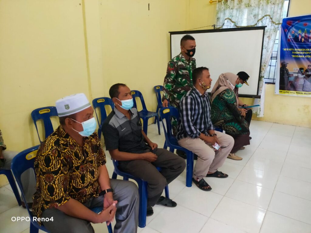 Sementara Danramil 06/Dam Kapten Inf Razak menyampaikan kehadiran TNI-Polri dalam kegiatan vaksinasi ini merupakan upaya kita dalam mendukung serbuan vaksinasi Covid-19 yang telah di programkan oleh pemerintah sebagai upaya dalam penanganan dan pencegahan wabah Covid-19.