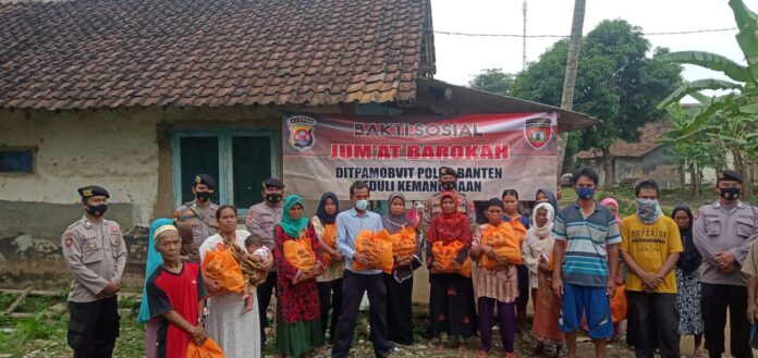 Global Cyber News.Com| Serang – Dalam rangka mengimplementasikan program Pendekar Banten point 11, Warung Jum’at Barokah Ditpamobvit Polda Banten bagikan sembako kepada warga kampung Cidadap Kelurahan Banjar Sari Kecamatan Cipocok Kota Serang pada Jumat (05/11).