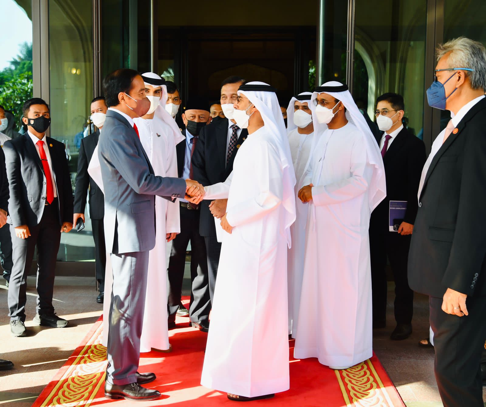 Turut hadir mendampingi Presiden Jokowi dalam acara Indonesia-PEA Investment Forum yaitu Menteri Koordinator Bidang Perekonomian Airlangga Hartarto, Menteri Koordinator Bidang Kemaritiman dan Investasi Luhut Binsar Pandjaitan, Menteri Luar Negeri Retno Marsudi, Menteri BUMN Erick Thohir, Menteri Perdagangan M. Lutfi, Menteri Investasi/Kepala BKPM Bahlil Lahadalia, Sekretaris Kabinet Pramono Anung, dan Duta Besar Republik Indonesia untuk PEA Husin Bagis dan Ketua Umum Kadin Arsjad Rasjid.