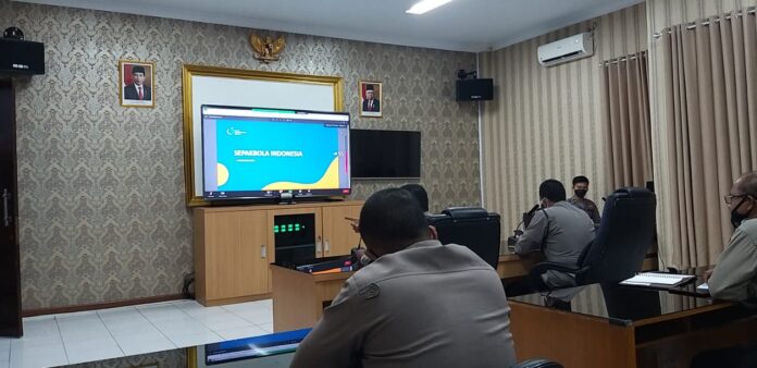 Kegiatan ini dipimpin langsung oleh Dir Operasional PT Liga Indonesia Baru IJP Drs Jarno dan Kabag Kerma Baharkam Polri Kombes Pol Suwarto melalui zoom meeting.