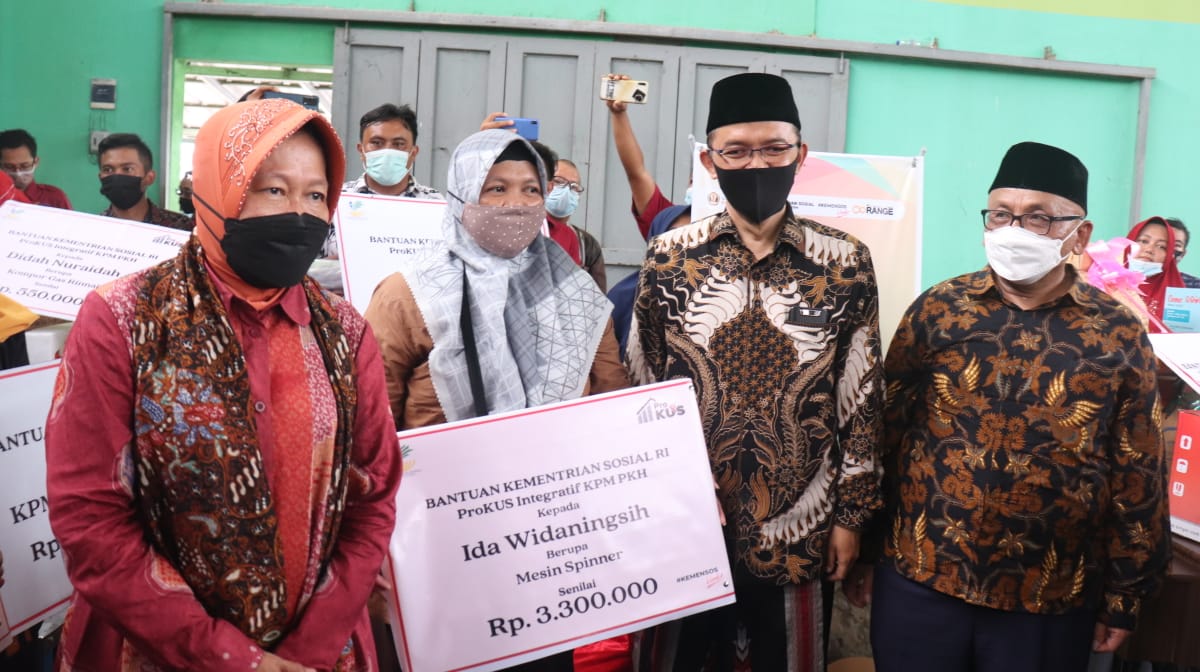 Usai berdiskusi dengan para tokoh masyarakat setempat, Risma selanjutnya menuju Aula Pertiwi Ponpes Al Mizan untuk menyerahkan langsung RS-Rutilahu (Rehabilitasi Sosial Rumah Tidak Layak Huni) dan bansos, termasuk juga kepada anak-anak yang menjadi korban Covid-19 yang orang tuanya meninggal karena Covid-19.