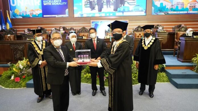 Global Cyber News.Com| Universitas Airlangga menyerahkan bibit Vaksin Merah Putih kepada PT. Biotis Pharmaceutical. Serah terima bibit vaksin dilakukan secara simbolis dari Rektor Univesitas Airlangga Muhammad Nasih kepada Direktur PT Biotis, FX Sudirman di Aula Gedung Garuda Mukti pada Selasa (9/11).