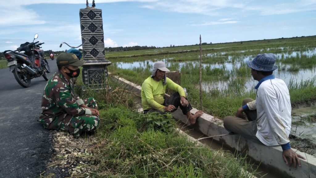 Global Cyber News.Com| Aceh Timur – Peran aktif Babinsa yang menjadi motivator melalui pendampingan pertanian kepada para petani di wilayah desa binaan, Sertu Suwandi Babinsa Koramil 21/Madat Kodim 0104/Aceh Timur melakukan komunikasi sosial dengan petani di sawah milik Murdani yang terletak di Desa Madat, Kecamatan Madat, Kabupaten Aceh Timur, Selasa (09/11/2021).