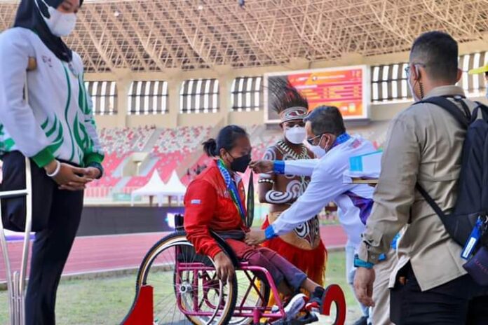 “Hari ini saya beruntung bisa menyaksikan dari dekat pertandingan ajang Paralimpik ke XVI di Jayapura,” papar Mahfud sembari menegaskan ikut bangga dan bersemangat.
