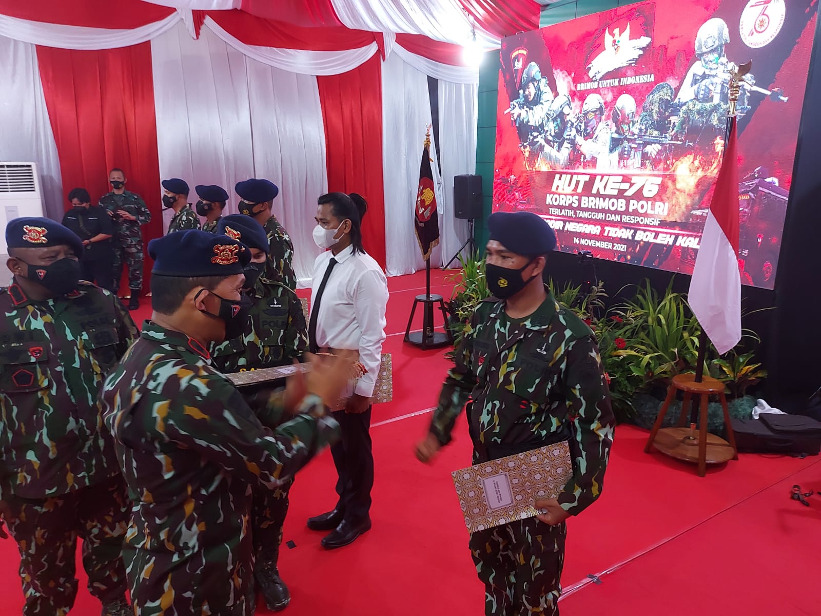 Komandan Satuan Brimob Polda Banten Kombes Pol Dwi Yanto Nugroho mengatakan bahwa di HUT Korps Brimob Polri ke-76 ini, Sat Brimob Polda Banten memberikan beberapa penghargaan.”Ya, di HUT Brimob kali ini, Brimob Banten memberikan penghargaan kepada 6 anak yang berprestasi, baik dalam bidang akademik maupun non akademik. Mereka semua putra putri dari anggota Brimob Banten dan penghargaan tadi diserahkan langsung oleh bapak Wakapolda Banten,” kata Dwi Yanto Nugroho.