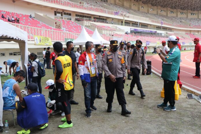 Global Cyber News.Com| Jayapura – Pada hari Sabtu tanggal 13 November 2021 pukul 11.30 Wit bertempat di Venue Atletik Stadion Lukas Enembe Kampung Harapan Distrik Sentani Timur Kabupaten Jayapura Provinsi Papua, Kapolda Papua Irjen Pol Mathius D. Fakhiri, S.I.K. meninjau Pertandingan Babak Final Cabang Olahraga Para-Atletik Peparnas XVI Papua 2021.