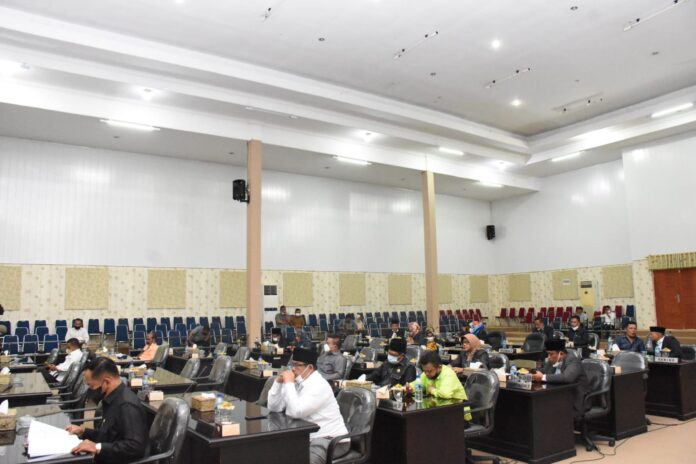 Kemudian ia menjabarkan, berpedoman kepada Rencana Kerja Pembangunan Daerah (RKPD) dan mengacu pada rencana kerja OPD, serta memperhatikan kemampuan keuangan daerah maka pendapatan daerah dalam rancangan pendapatan dan belanja daerah TA 2022 ditargetkan sebesar Rp 1.181.933.922.310. Dari jumlah tersebut penerimaan dari dana PAD tahun 2022 sebesar Rp 168.590.200.000, meningkat dari tahun 2021 sebesar Rp 153.044.751.436. Kemudian Sumber Dana Pendapatan Transfer tahun 2022 sebesar Rp 1.013.343.722.310. Sementara itu belanja daerah dalam R-APBD TA 2022 dialokasikan sebesar Rp 1.143.166.422.310, yang terdiri dari Belanja Operasi sebesar Rp 812.300.680.036, Belanja Modal sebesar Rp 47.740.889.374, Belanja Tidak Terduga sebesar Rp 5.000.000.000 dan Belanja Transfer sebesar Rp 278.124.852.900. Terakhir Pengeluaran Pembiayaan sebesar Rp 38.767.500.000.