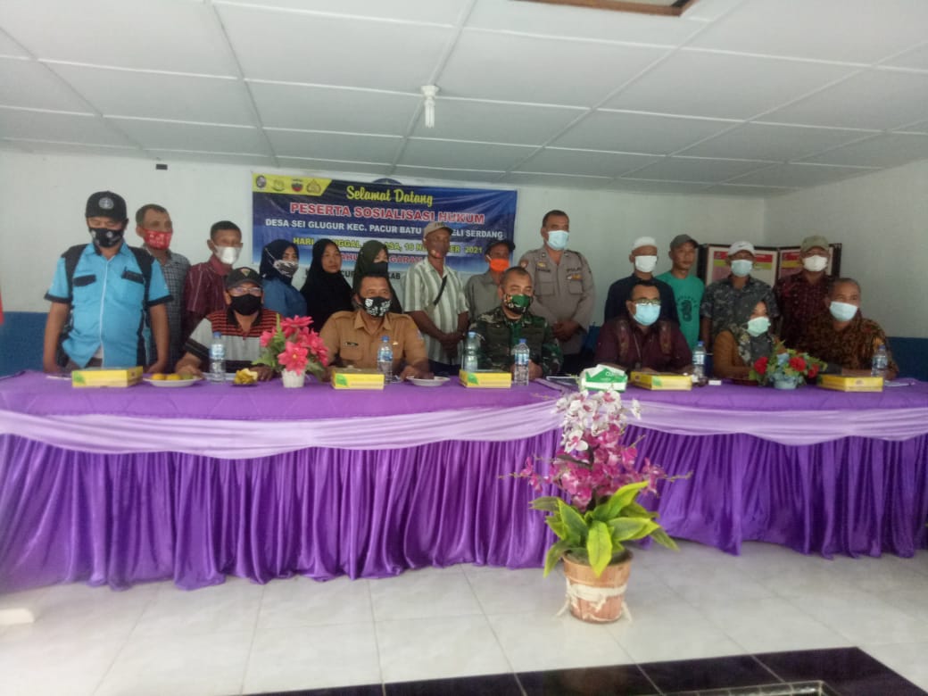 Global Cyber News.Com| Kegiatan Sosialisasi hukum yang dilaksanakan oleh Desa Sei Gelugur Kecamatan Pancur Batu Kabupaten Deli Serdang yang diadakan di Aula kantor Desa Sei Gelugur, Selasa, 16 November 2021.