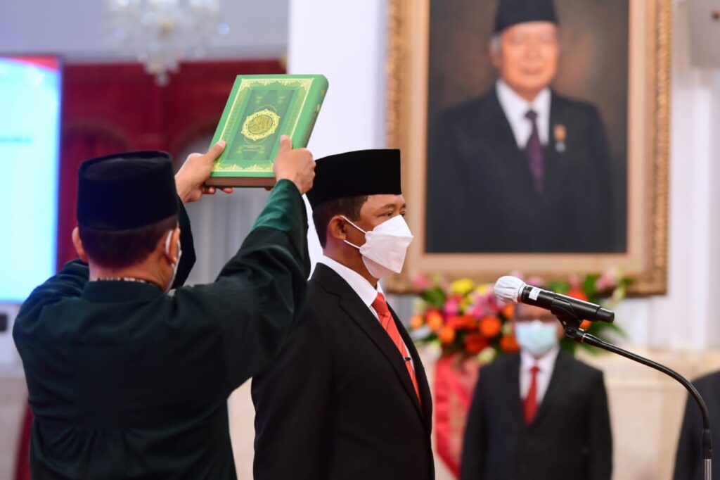 Turut mendampingi Presiden dalam pelantikan tersebut yakni Ibu Negara Iriana Joko Widodo dan Wakil Presiden Ma’ruf Amin beserta Wury Ma’ruf Amin.