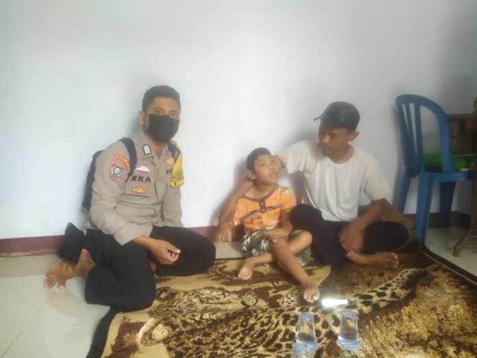 Pada kegiatan sambang ini Bhabinkamtibmas mendatangi warga yang mengalami sakit Microsopalus yaitu Fadlan (9) putra kandung dari Yaya Suruli (38 ) yang sehari-hari bekerja sebagai tukang ojek.