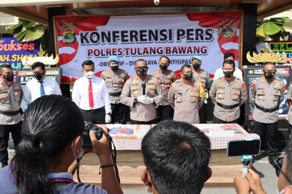 Global Cyber News.Com| Lampung – Polres Tulang Bawang jajaran Polda Lampung melaksanakan Press Release ungkap kasus tindak pidana perlindungan anak, bertempat di Mapolres Tulang Bawang, Senin (22/11/2021).