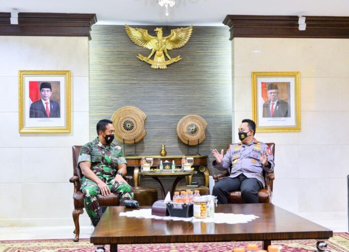 Global Cyber News.Com| Jakarta – Panglima TNI Jenderal Andika Perkasa menyambangi Kapolri Jenderal Listyo Sigit Prabowo di Mabes Polri, Jakarta Selatan, Selasa (23/11/2021). Dalam kesempatan itu, kedua Jenderal tersebut salah satunya membahas soal ditingkatkannya sinergitas dan soliditas TNI-Polri.