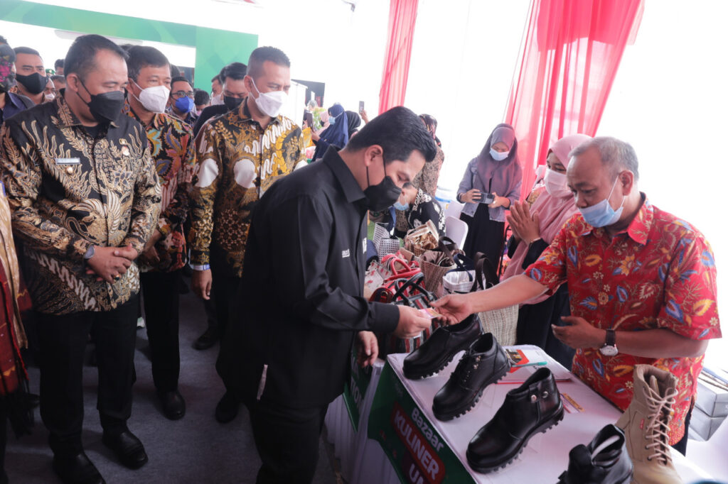 Pembukaan KIM Expo 2021 ditandai pemukulan Gordang Sambilan oleh Menteri BUMN Erick Thohir bersama Wakil Gubernur Musa Rajekshah, dan lainnya. Sebelum meninggalkan tempat, rombongan meninjau lokasi pameran perusahaan BUMN sekaligus pengguntingan pita stan UMKM. (pl)