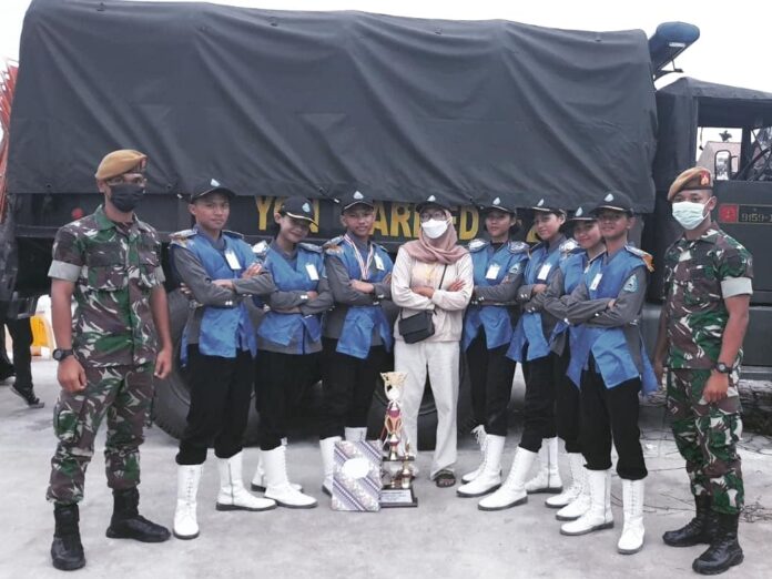 Kegiatan perlombaan Paskibra setingkat pelajar yang berjudul “Semarak Semangat Kawula Muda (Sangkala Season 1 Tahun 2021)” ini diikuti oleh mayoritas SMA/Sederajat se-Medan kota. Sebanyak 3 orang anggota Yonarmed 2/105 Trk/KS turut andil melatih siswa SMKN 3 Medan dalam penyiapan perlombaan tersebut.