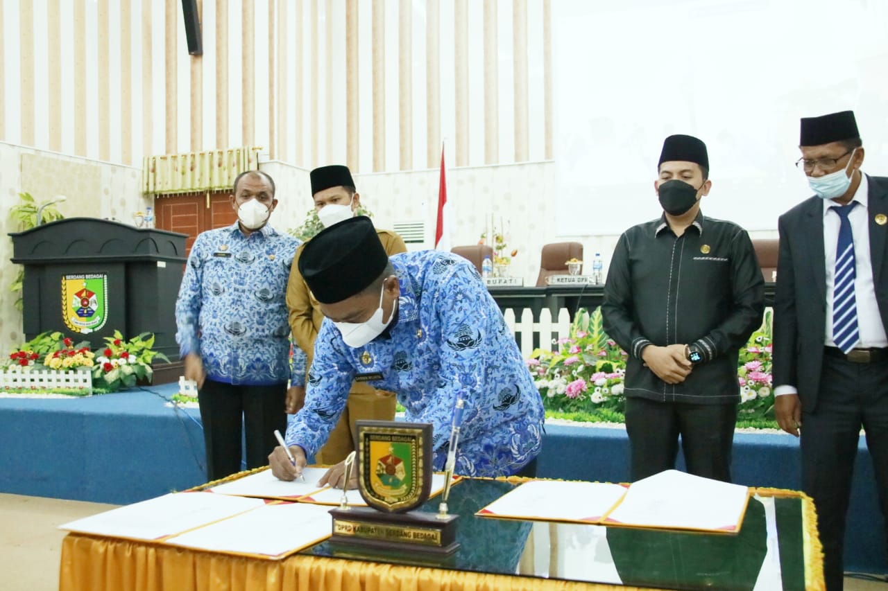 Mengawali sambutannya, Bupati Sergai menyampaikan apresiasi dan ucapan terima kasih serta penghargaan kepada pimpinan dan segenap anggota dewan yang memberikan dukungan dan kerja sama di mana proses pembahasan sampai dengan pengesahan dapat berjalan dengan baik.