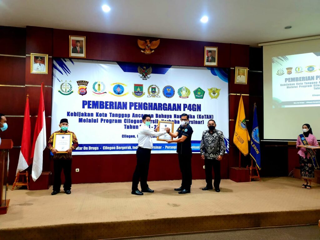 Adapun 11 Penerima Penghargaan P4GN (Pencegahan dan Pemberantasan Penyalahgunaan dan Peredaran Gelap Narkotika) dari BBN Provinsi Banten yaitu Wali Kota Cilegon, Wakil Wali Kota Cilegon, Ketua DPRD Cilegon, Danlanal Banten, Dandim Cilegon, Kapolres Cilegon, Kajari Cilegon, Lapas Cilegon, Kementerian Agama Cilegon, Kepala Bea dan Cukai Banten serta Dirut PT. Krakatau Bandar Samudera.