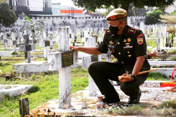 Global Cyber News.Com| Danyonarmed 2/105 Trk/KS memimpin pelaksanaan ziarah di TMP Bukit Barisan dalam rangka HUT ke-76 Armed TNI Ad dan HUT ke-69 Yonarmed 2, Medan. Kamis (02/11/2021).