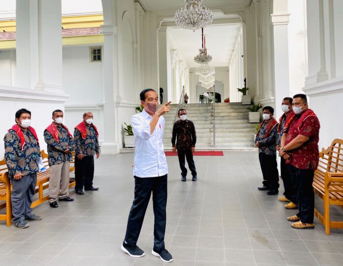 Global Cyber News.Com|Presiden Joko Widodo menerima enam perwakilan warga Liang Melas Datas, Kabupaten Karo, Provinsi Sumatera Utara di Istana Merdeka, Jakarta, pada Senin, 6 Desember 2021. Selain menyampaikan aspirasi, para perwakilan warga tersebut juga membawa satu truk berisi buah jeruk sebanyak tiga ton sebagai “oleh-oleh” bagi Presiden Joko Widodo.
