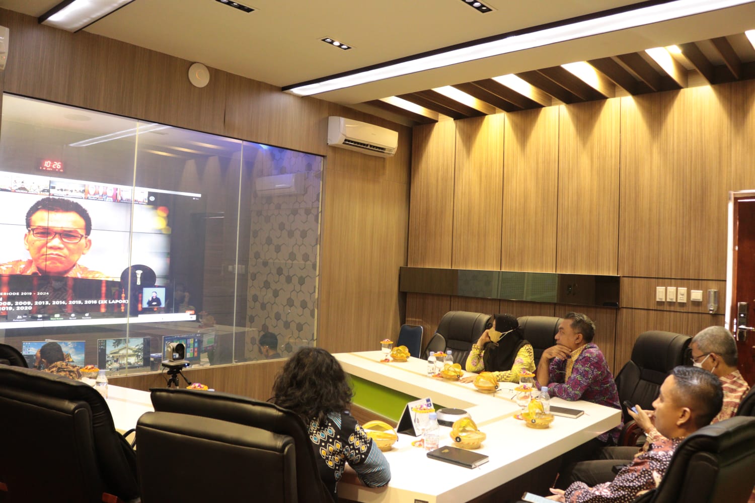 Global Cyber News.Com| Inspektur Daerah Kota Binjai Drs. Eka Edi Saputra bersama dengan Asisten Pemerintahan dan Kesra Kota Binjai Ernawati, SH. M.AP., Sekretaris Inspektorat Daerah Kota Binjai Asri Darmawansyah AP, SE, M.AP., dan Kepala Bagian Administrasi Pemerintahan dan Kerjasama Kota Binjai Adri Rivanto S.STP mengikuti peringatan Hari Antikorupsi Sedunia secara Virtual di Binjai Command Center, Kamis (9/12/2021).