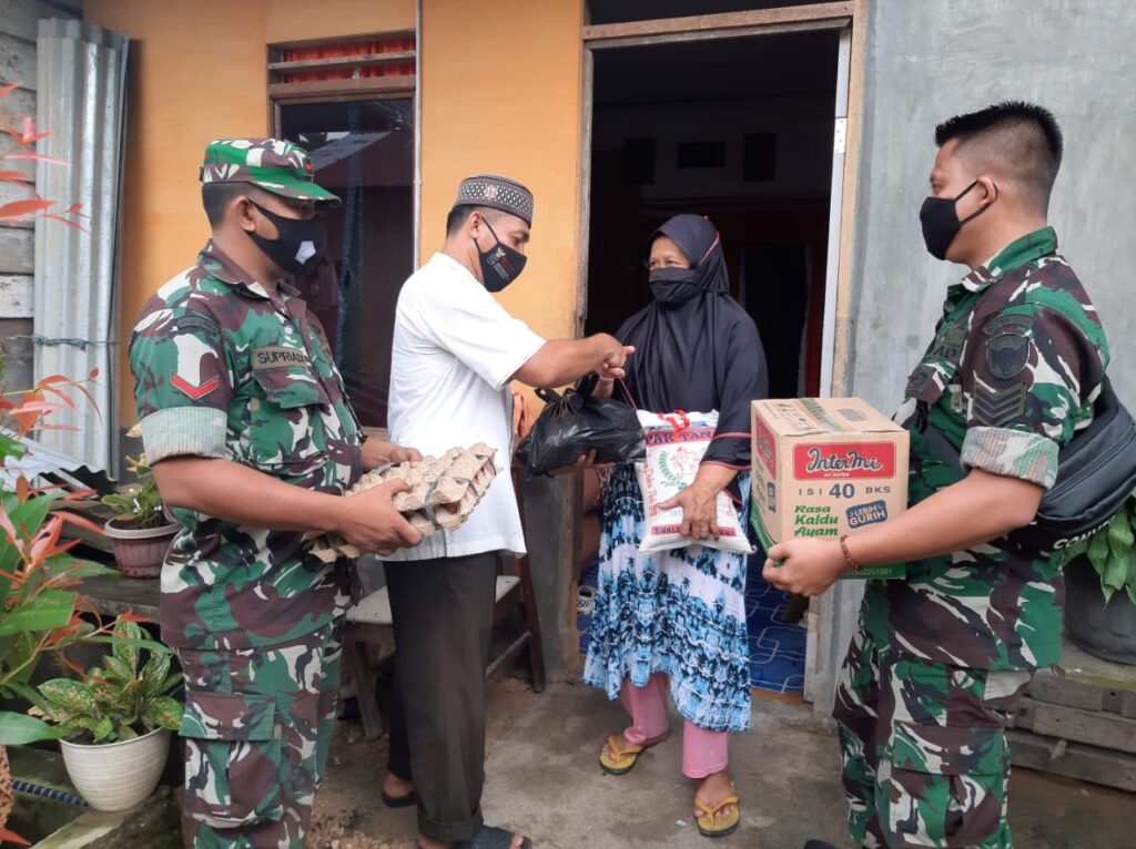 Kodim Aceh Timur melalui Staf Logistik membagikan sembilan bahan pokok berupa beras, gula, sirup, dan telur bagi masyarakat yang terdampak Pandemi Covid-19.