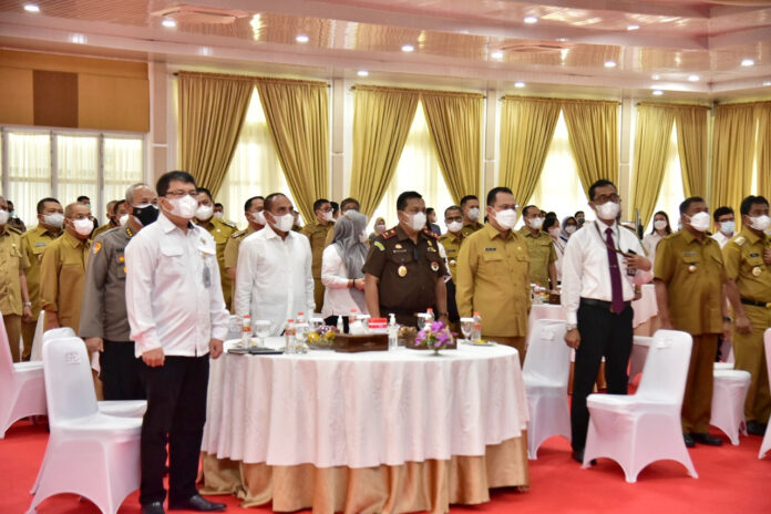 Hal itu disampaikan Gubernur Edy Rahmayadi saat acara Penyerahan DIPA dan TKDD tahun 2022 dengan tema Pemulihan Ekonomi dan Reformasi Struktural, di Aula Tengku Rizal Nurdin, Rumah Dinas Gubernur, Senin (13/12). Hadir di antaranya Plt Kepala Kanwil Ditjen Perbendaharaan Sumut Kementerian Keuangan, Syafriadi, para Kepala Daerah, serta perwakilan instansi vertikal Pemerintah Pusat penerima dokumen.