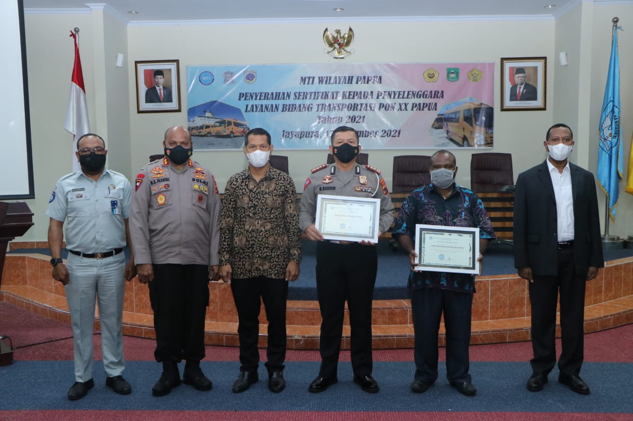 Global Cyber News.Com| Jayapura – Pada hari Jumat tanggal 17 Desember 2021 bertempat di Ruang Rapat Rektorat Universitas Cenderawasih Jalan Kam Wolker Perumnas III Kelurahan Yabansai Distrik Heram Kota Jayapura Provinsi Papua telah dilaksanakan Acara Penyerahan Sertifikat kepada Penyelenggara Layanan Bidang Transportasi PON XX Papua tahun 2021.