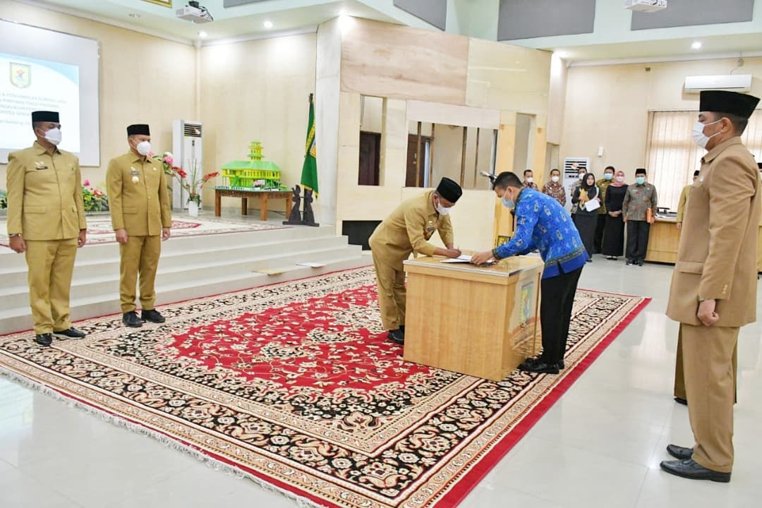 Bupati Serdang Bedagai (Sergai) H. Darma Wijaya melantik 12 Pejabat Pimpinan Tinggi (JPT) Pratama di Aula Sultan Serdang, Kompleks Kantor Bupati Sergai, Sei Rampah (16/12/2021).