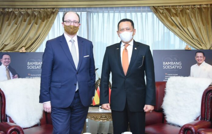 Global Cyber News.Com| JAKARTA – Ketua MPR RI sekaligus Ketua Umum Ikatan Motor Indonesia (IMI) Bambang Soesatyo mengajak Duta Besar Kerajaan Spanyol untuk Indonesia H.E. Mr. Francisco De Asis Aguilera Aranda, bersama-sama meyakinkan Dorna Sport yang berkantor pusat di Madrid, Spanyol, bahwa Indonesia pada tahun 2022 nanti siap menyelenggarakan kejuaraan bergengsi MotoGP. Tidak hanya satu putaran, melainkan siap menyelenggarakan MotoGP sebanyak dua putaran.