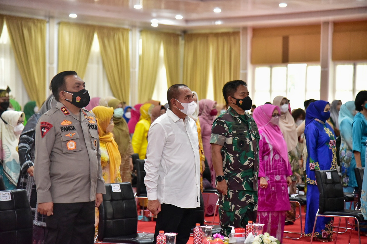 Hadir saat itu Kapolda Sumut Irjen Pol RZ Panca Putra Simanjuntak, Pangdam I/BB Mayjend TNI Hassanudin, Wakil Ketua I TP PKK Sumut Sri Ayu Mihari, organisasi perempuan dan OPD Pemprov Sumut