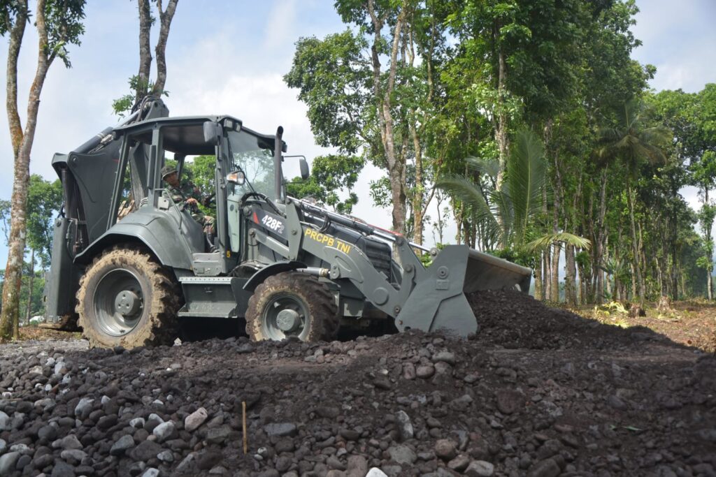 “Anggota Yonzipur 10/JP/2 Kostrad di bantu oleh Dinas PUPR bekerja sama untuk percepatan proses pembukaan lahan 80 Hektar dibantu dengan alat dozer milik Dinas PUPR, dan proses pembukaan lahan di perkirakan akan selesai dalam kurun waktu 14 hari”, ungkapnya.