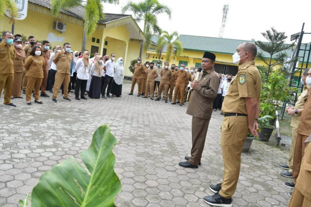 Sambutan Bupati Sergai H. Darma Wijaya dilapangan Inspektorat Sergai saat melakukan sidak,