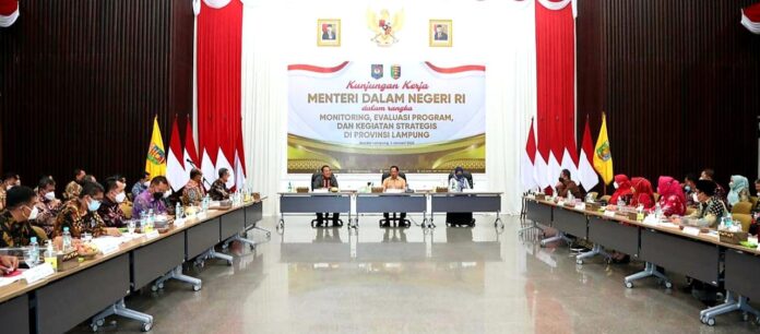 Dalam kunkernya, Mendagri memberikan arahan kepada Gubernur Lampung dan seluruh kepala daerah se-Lampung melalui Rapat Koordinasi (Rakor) terkait berbagai program strategis dan prioritas pemerintah. Program tersebut seperti percepatan vaksinasi Covid-19, penanganan pandemi Covid-19, dan evaluasi realisasi Anggaran Pendapatan dan Belanja Daerah (APBD) Tahun Anggaran 2021.