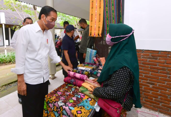 Global Cyber News.Com|Presiden Joko Widodo dan Ibu Iriana Joko Widodo mengunjungi kawasan usaha mikro, kecil, dan menengah (UMKM) Bazaar Mandalika, Kabupaten Lombok Tengah, Provinsi Nusa Tenggara Barat, pada Kamis, 13 Januari 2022. Di sana, Presiden dan Ibu Iriana menghampiri beberapa gerai produk UMKM, mulai dari gerai produk perhiasan mutiara, kain tenun, hingga sepatu.
