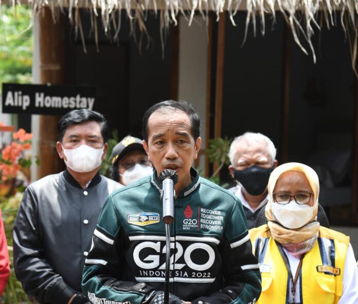 Global Cyber News.Com|Presiden Joko Widodo meninjau lokasi sarana hunian pariwisata (sarhunta) berupa homestay di Dusun Ebangah dan Gerupuk, Desa Sengkol, Kabupaten Lombok Tengah, pada Kamis, 13 Januari 2021, yang dibangun guna mendukung gelaran MotoGP Mandalika 2022. Presiden menyebut, gelaran balap motor kelas dunia tersebut diharapkan dapat meningkatkan ekonomi masyarakat sekitar.
