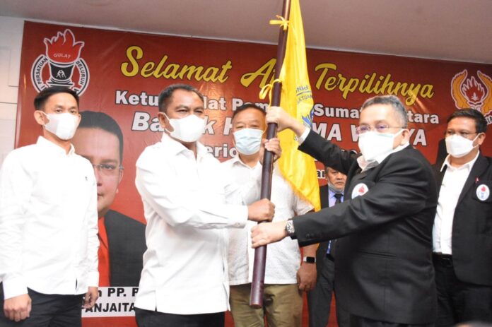 Global Cyber News.Com| Bupati Serdang Bedagai H. Darma Wijaya Dikukuhkan sebagai Ketua Pengurus Provinsi Persatuan Gulat Seluruh Indonesia ( PGSI. ) . Provinsi Sumatera Utara periode 2022 – 2026 yang diadakan di hotel Alam Medan, jumat , 21 Januari 2022 .