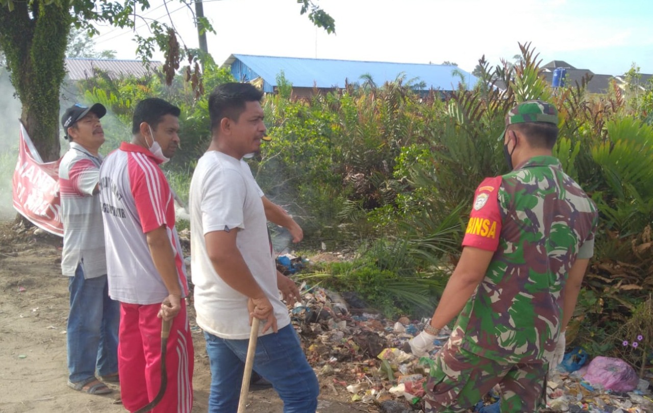 Global Cyber News.Com| Langsa – Peduli kebersihan lingkungan Sertu Devi Putra Babinsa Koramil 23/Langsa Timur Kodim 0104/Aceh Timur ajak warganya bersihkan tumpukan sampah dipinggir jalan raya tepatnya di jalan lintas Medan-Banda Aceh Desa Alue Pineung, Kecamatan Langsa Timur, Kota Langsa, Jum’at (21/01/2022).