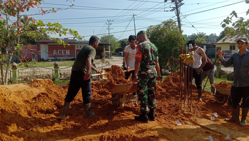 Global Cyber News.Com| Aceh Timur – Guna mempererat tali silaturahmi dengan warga binaannya, Anggota Koramil 14/Rantau Peureulak Kodim 0104/Aceh Timur bersama warga melaksanakan gotong royong penimbunan tanah pada pembangunan Masjid Al-Abrar, di Desa Pasi Putih, Kecamatan Rantau Peureulak, Kabupaten Aceh Timur, Sabtu (29/01/2021).