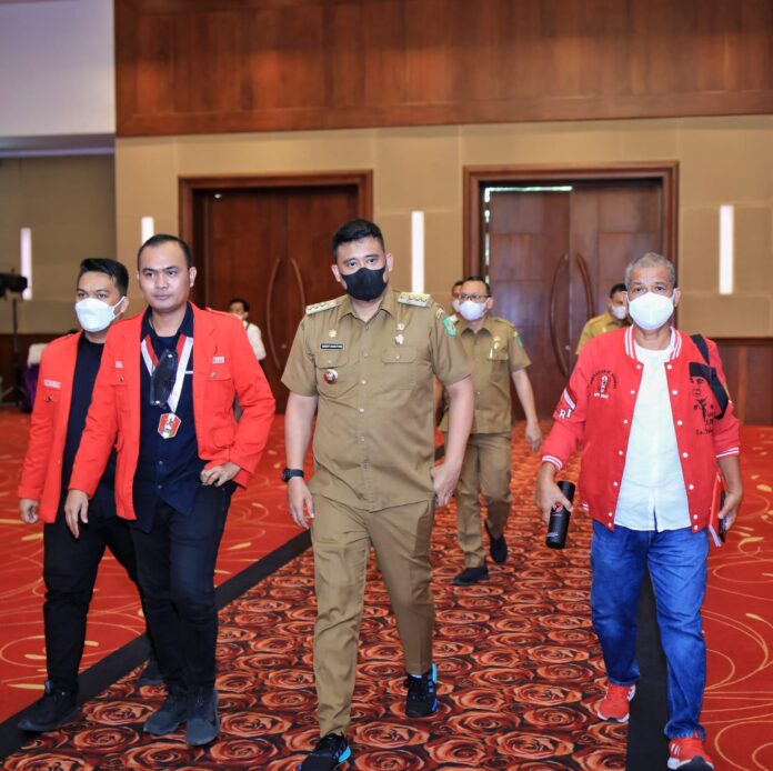 Global Cyber News.Com|Wali Kota Medan Bobby Nasution membuka secara resmi Konsolidasi Nasional (Konas) Gerakan Mahasiswa Nasional Indonesia (GMNI) di Wisma Benteng, Medan, Senin (21/2). Diharapkan pertemuan ini dapat menghasilkan rasa nasionalisme yang tinggi dari para generasi muda bangsa Indonesia guna meningkatkannya rasa persatuan dan kesatuan.