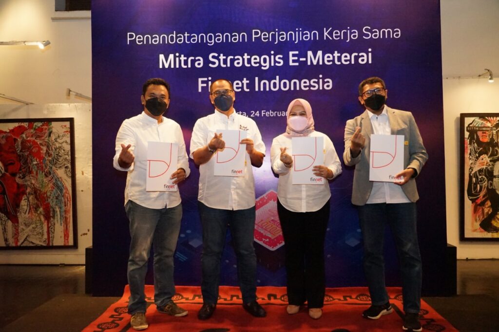 Global Cyber News.Com|Jakarta – PT Finnet Indonesia (Finnet) melakukan penandatanganan kerja sama distribusi e-Meterai dengan PT Pos Finansial Indonesia (POSFIN), PT Multimedia Nusantara (Telkom Metra) dan PT Kuwais International. Bertempat di Tugu Kunskring Palais baru-baru ini.