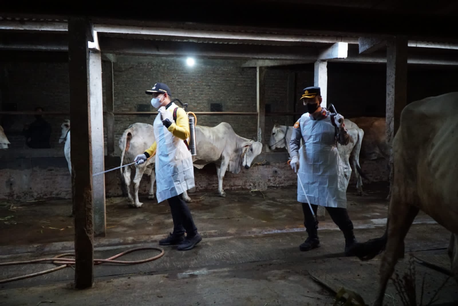 Kapolres Kendal dan Bupati Semprot Kandang Sapi dengan Disinfektan Antisipasi Penyebaran PMK
