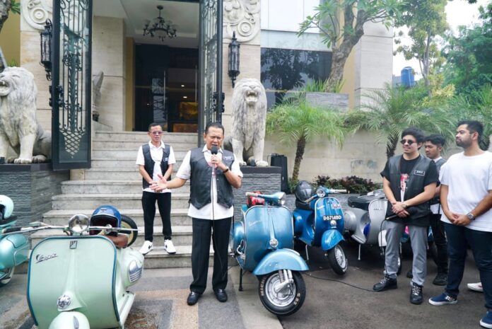 Global Cyber News.Com|JAKARTA – Ketua MPR RI sekaligus Ketua Umum Ikatan Motor Indonesia (IMI) Bambang Soesatyo bersama Wakil Ketua Komunikasi dan Media IMI Pusat Atta Halilintar menerima komunitas motor Classic Nih Bos (CNB) sebagai anggota keluarga besar IMI. CNB terdiri dari berbagai jenis motor Vespa klasik, Honda C70, Honda C80 dan motor klasik lainnya.