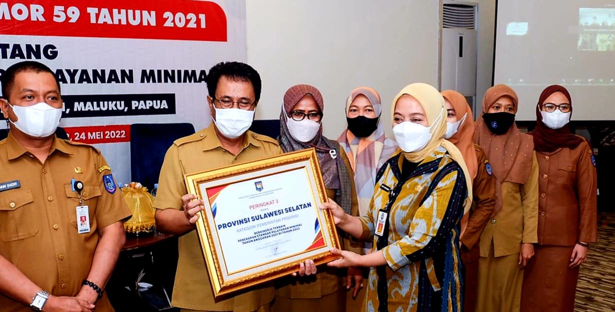 Penghargaan diberikan kepada daerah berkinerja terbaik penerapan SPM Tahun 2021 di regional II kepada Provinsi Sulawesi Selatan sebagai peringkat 2 Nasional dan Peringkat 1 untuk wilayah Kalimantan, Sulawesi, Maluku dan Papua.