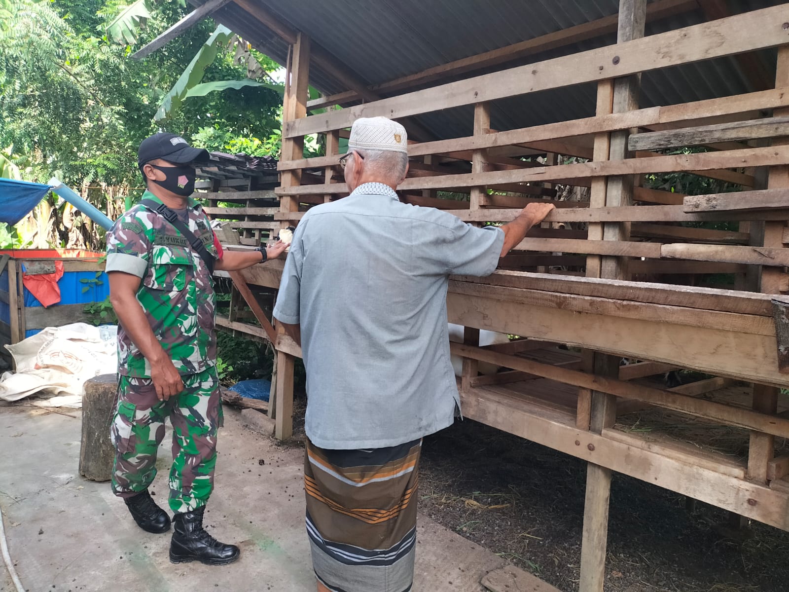 Kegiatan tersebut dilakukan Babinsa saat menyambangi peternakan kambing milik warga di Desa Meunasah Teungoh, Kecamatan Pante Bidari, Aceh Timur, Kamis (26/05/2022).