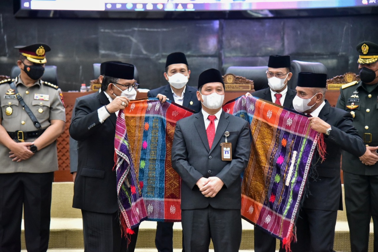 BPK RI memberikan Opini WTP atas LKPD TA 2021 di Ruang Rapat Paripurna DPRD Sumut, Jalan Imam Bonjol Nomor 5, Medan, Jumat (27/5). Hadir pada acara penyerahan LHP ini Ketua DPRD Sumut Baskami Ginting, Kepala BI Perwakilan Sumut Doddy Zulverdi, Pj Sekretaris daerah serta unsur Forkopimda Sumut, OPD Pemprov Sumut dan juga anggota dewan DPRD Sumut.