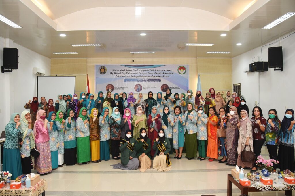 “Ketahanan sebuah keluarga sangat dibutuhkan, dan ujung tombaknya adalah perempuan,” kata Ketua Tim Penggerak Pemberdayaan Kesejahteraan Keluarga (TP PKK) Sumatera Utara (Sumut) Nawal Lubis sebagai pemateri pada acara silaturahmi bersama Darma Wanita Persatuan (DWP) Fakultas Ilmu Budaya (FIB) Universitas Sumatera Utara (USU) di Gedung Serbaguna Tengku Amin Ridwan, Kampus USU, Medan, Jumat (27/5). Silaturahmi yang diadakan Darma Wanita FIB USU, turut dihadiri Dekan FIB USU Tengku Thyrhaya Zein, Ketua DWP FIB USU Talia Pujiono dan anggota DWP FIB USU.
