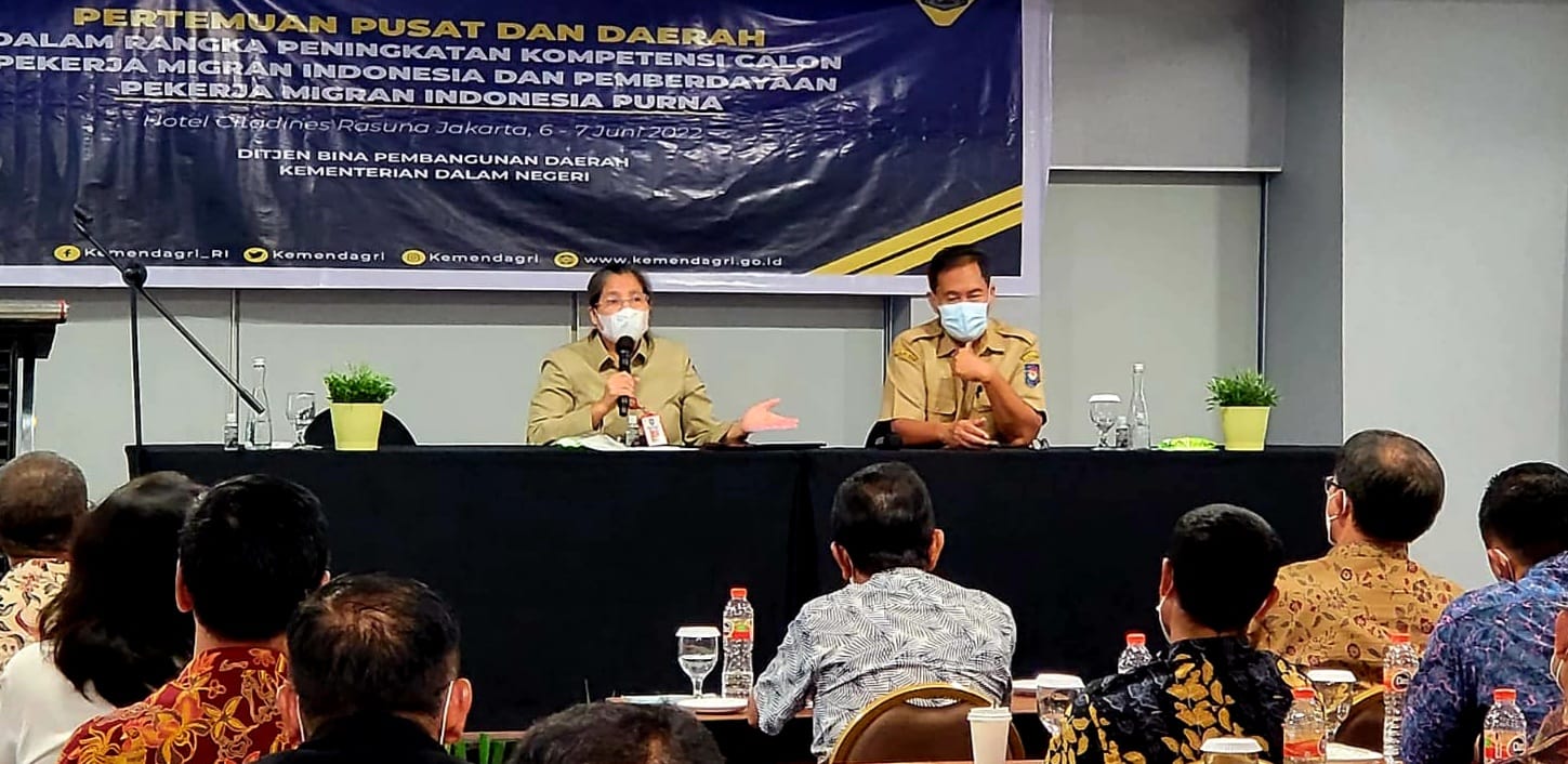 Global Cyber News.Com|JAKARTA — Ir. Zanariah, M.Si selaku Direktur Sinkronisasi Urusan Pemerintahan Daerah IV Ditjen Bina Pembangunan Daerah Kementerian Dalam Negeri, membuka Acara Pertemuan Pusat dan Daerah Dalam Rangka Peningkatan Kompetensi Calon Pekerja Migran Indonesia dan Pemberdayaan Pekerja Migran Indonesia Purna.