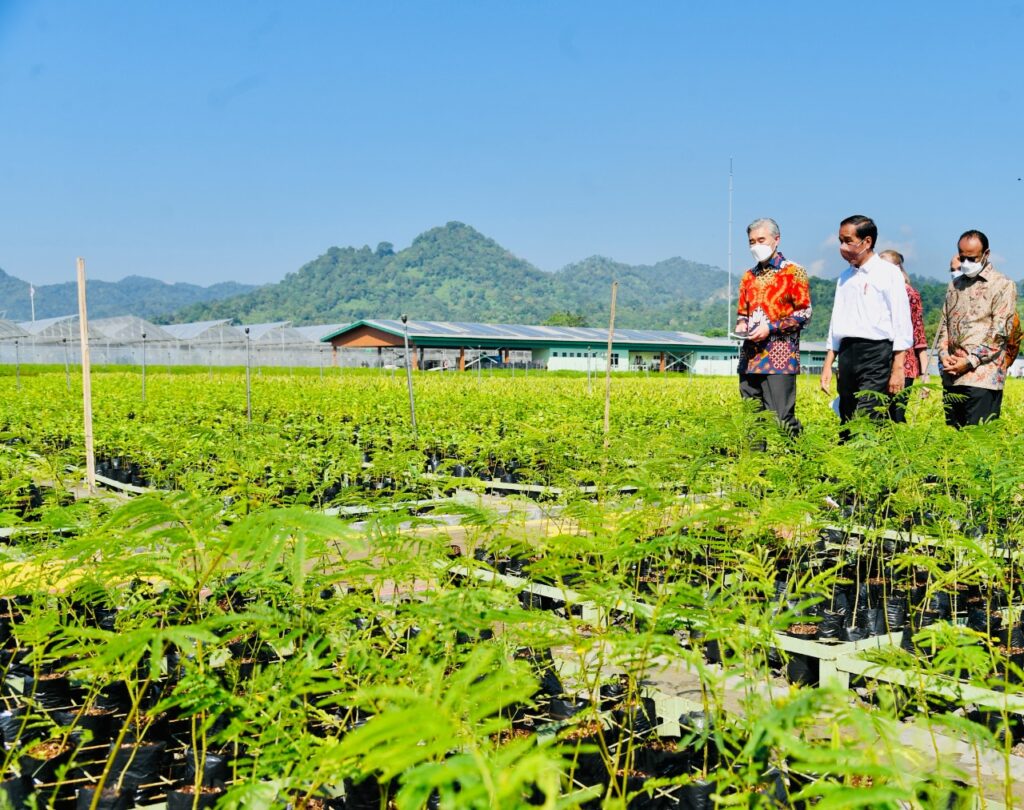 “Dimulai dari persemaian, dari pembibitan seperti ini, sehingga jelas dan konkret ke mana perbaikan-perbaikan itu kita lakukan. Karena kita tahu hutan mangrove bisa mereduksi, menyerap karbon 4 kali lipat dibandingkan hutan biasa, hutan hujan tropis biasa,” ujar Kepala Negara.