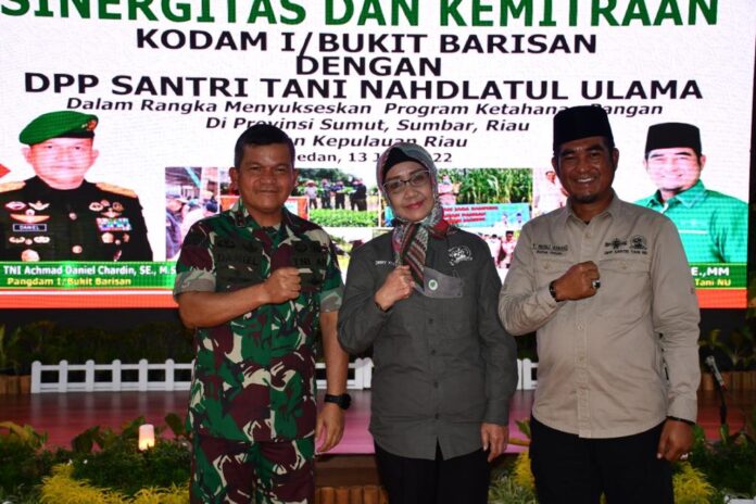 Global Cyber News.Com|Medan – Pangdam I/BB Mayjen TNI Achmad Daniel Chardin SE MSi telah menandatangani perjanjian kerjasama dengan Ketua Umum DPP Santri Tani Nahdlatul Ulama T. Rusli Ahmad SE MM dalam rangka sinergitas dan kemitraan untuk menyukseskan ketahanan pangan di Provinsi Sumatera Utara, Sumatera Barat, Riau, dan Kepri di gedung AH Nasution, Makodam I/BB Jalan Gatot Subroto Km.7,5 Medan, Senin (13/06/2022).